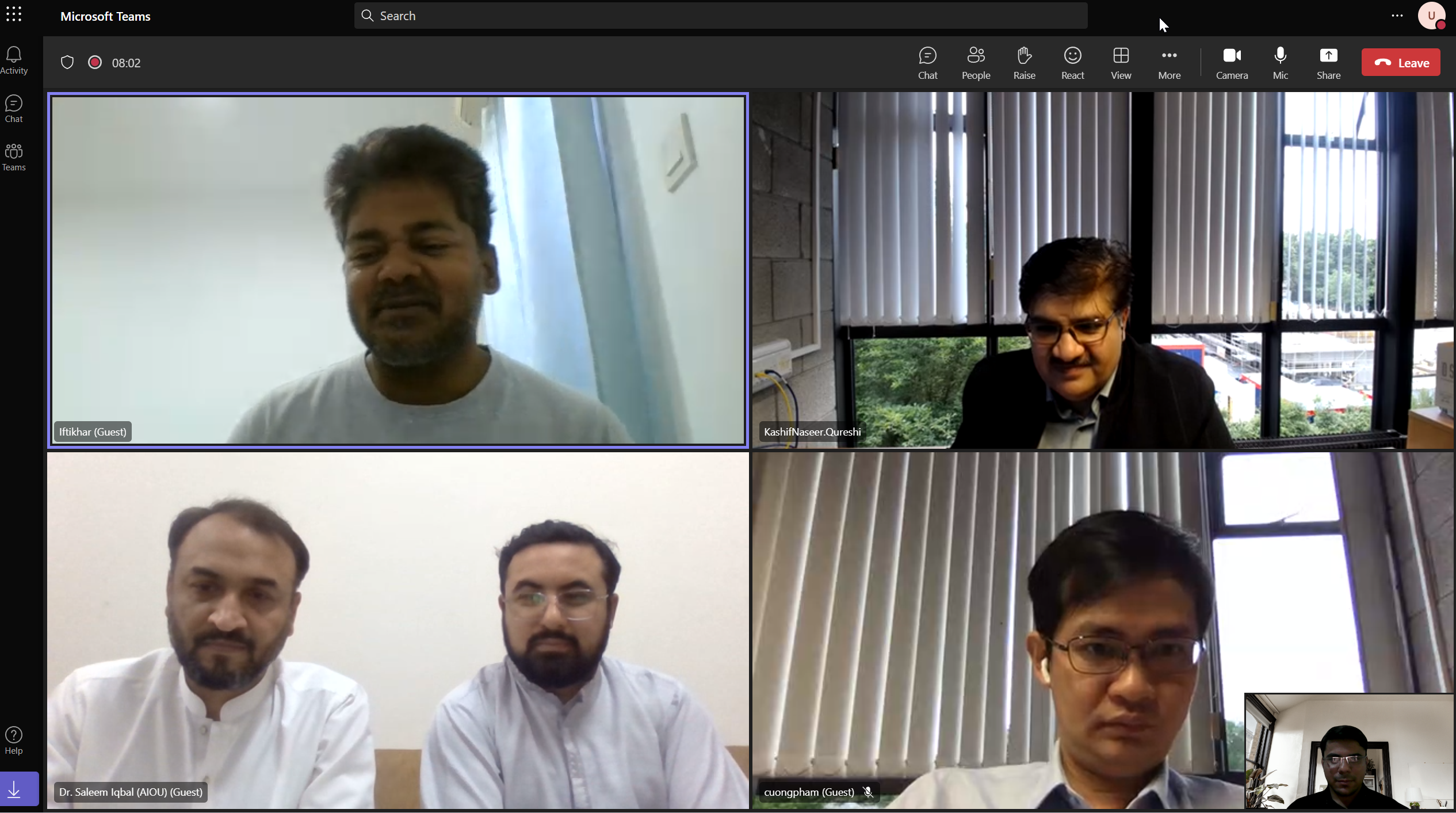 On the scene: Dr. Cuonghpham (University of Thailand) Prof. Kashif Naseer Qureshi (University of Limerick), Prof. Prof.Saleem Iqbal(Allam Iqbal Open University Islamabad, Pakistan), Usman Ahmad (me)