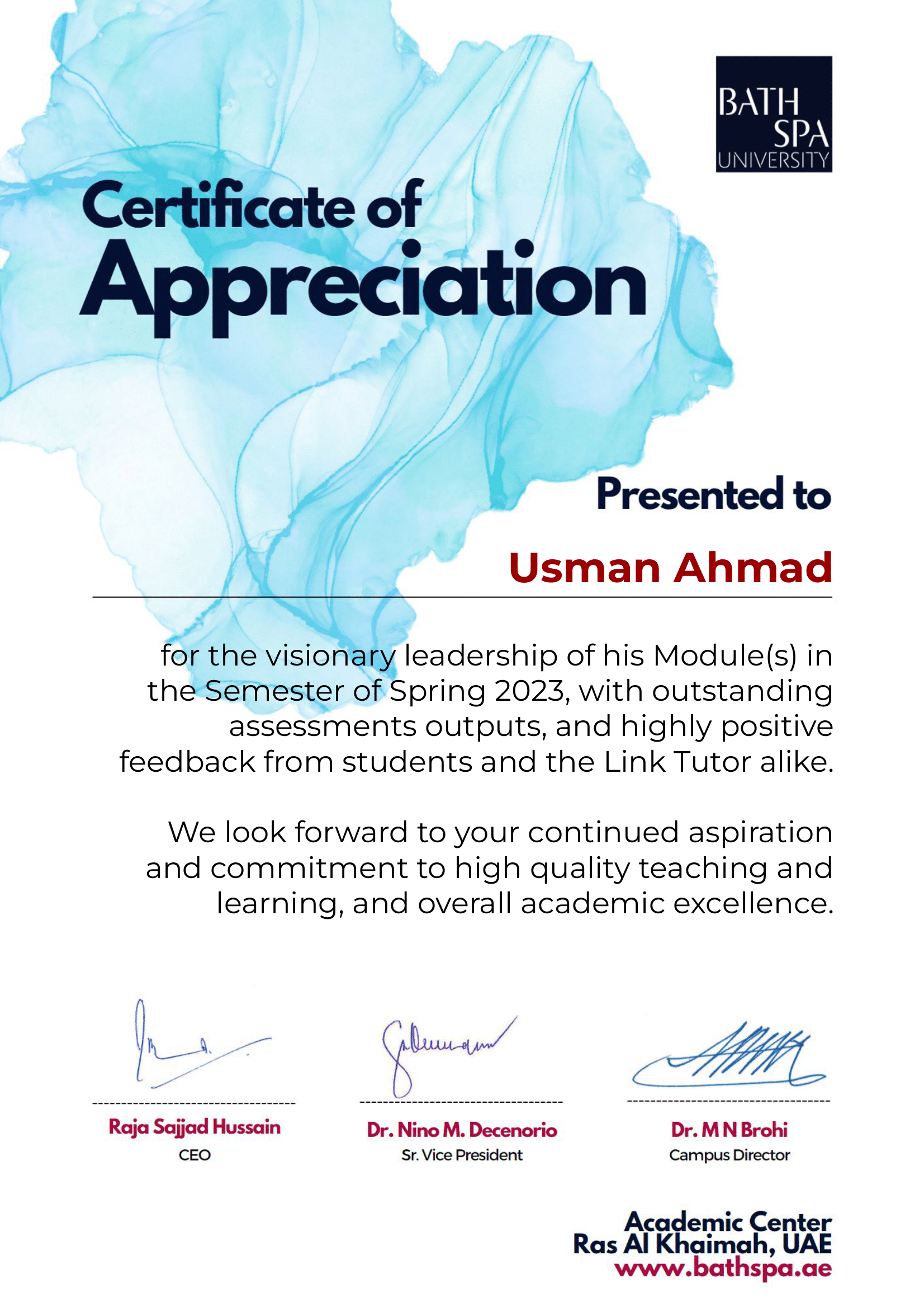It was an honour to receive Faculty research award from Vice chancellor Prof. Sue Rigby of Bath Spa University at graduation ceremony of Bath Spa University Academic Centre RAK. hashtag#graduation hashtag#research